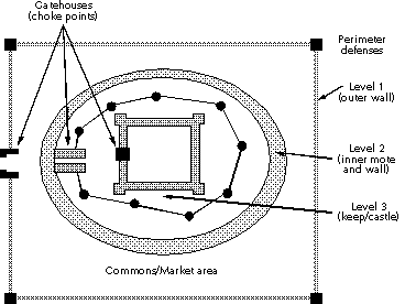 NOTE: Interestingly, the castle proved quite capable of withstanding attacks until the cannon came along. In the 16th century, Essex and Cromwell overran many castles in Ireland with little artillery. They simply blew the parapets off the top of castle walls to make them indefensible, then scaled the walls. What similar weapons will our network defenses face?