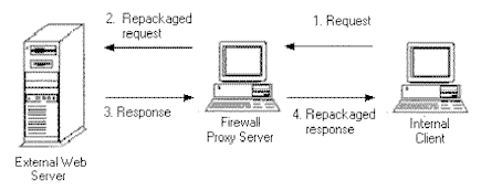 A proxy server is a component of a firewall that controls how internal users access the outside world (the Internet) and how Internet users access the Internal network. In some cases, the proxy blocks all outside connections and only allows internal users to access the Internet. The only packets allowed back through the proxy are those that return responses to requests from inside the firewall. In other cases, both inbound and outbound traffic are allowed under strictly controlled conditions. Note that a virtual “air-gap” exists in the firewall between the inside and outside networks and that the proxies bridge this gap by working as agents for internal or external users.